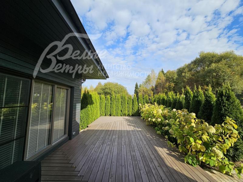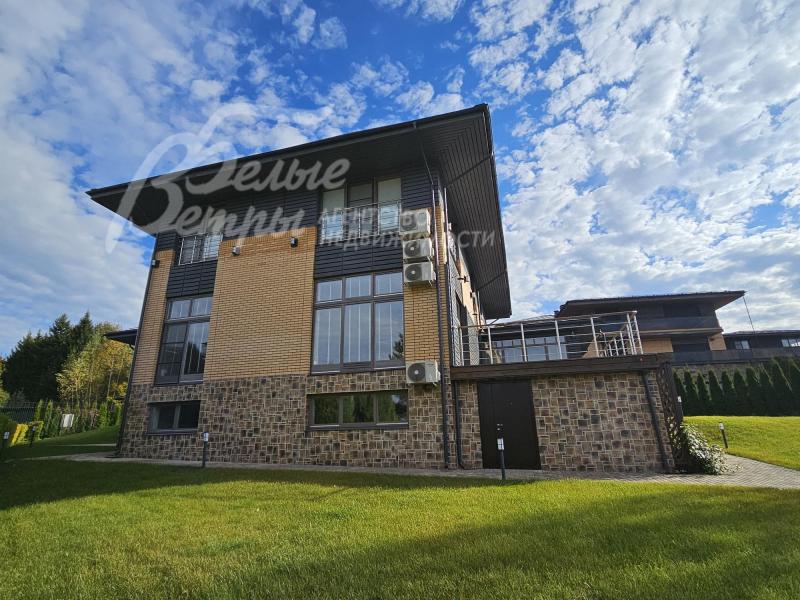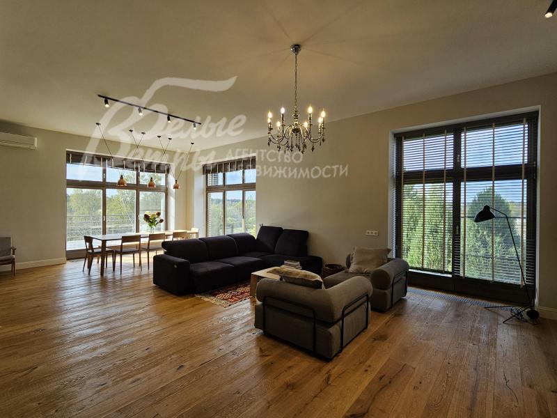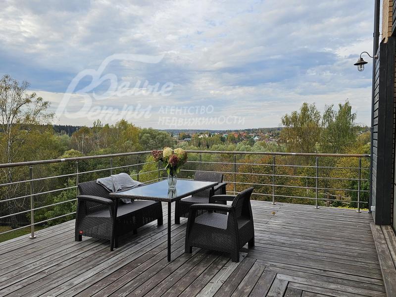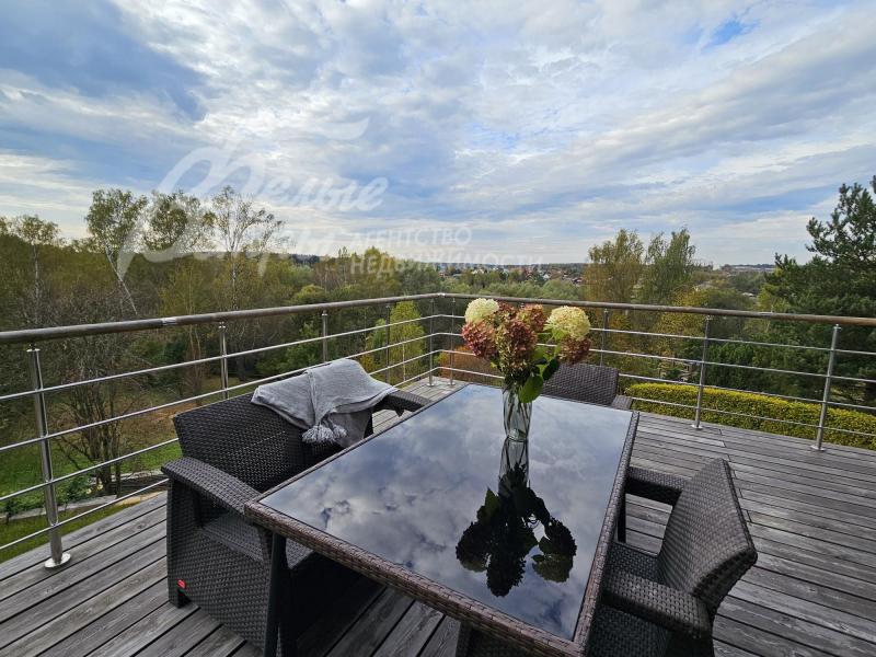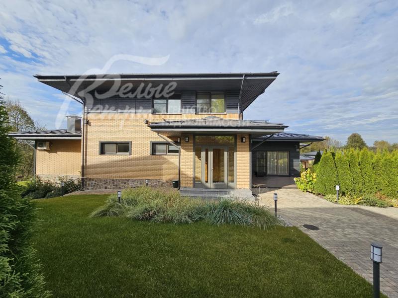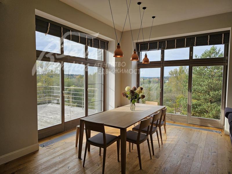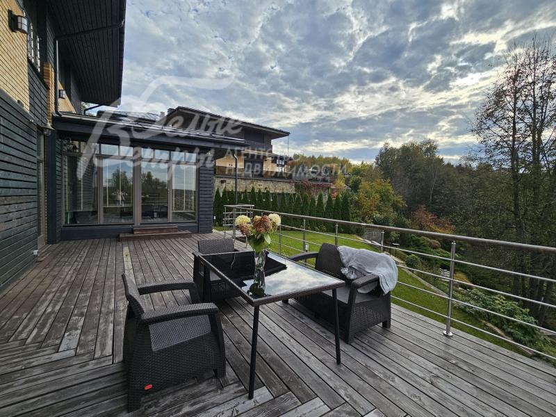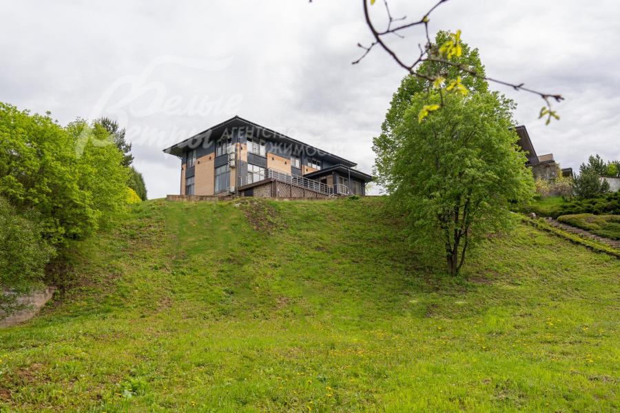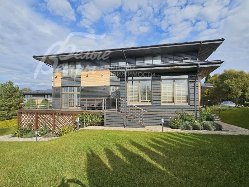 Новый элитный видовой дом на высоком берегу реки Пахра, архитектура в духе Фрэнка Ллойда Райта, с панорамными террасами: с одной из них открывается захватывающий вид на запад на несколько километров, создающий ощущение полёта. Дом сочетает высокое качество строительства, премиальные материалы, большие окна из лиственницы, все спальни со своими санузлами и гардеробными, есть гостевой блок, спа-зона, купель. Отделка и меблировка выполнены в скандинавском стиле в светлых тонах с природной эстетикой: в доме много света, натуральные дорогостоящие материалы, мебель из массива дерева. Дом стоит на просторном лесном двухуровневом участке с профессиональным ландшафтом, с выходом к реке, в клубном коттеджном посёлке премиум-класса с богатой собственной инфраструктурой.